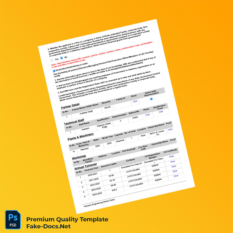Get the India Haryana Engineering Works Portal Contractor Registration Application Form Template (Word & PDF) for fast, easy, and professional contractor registration.
