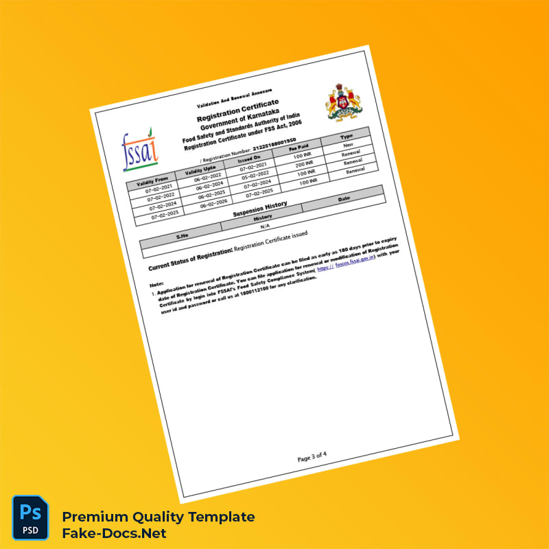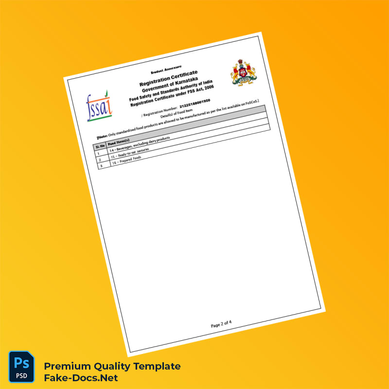 India Karnataka Food Registration Certificate Template (Word & PDF) 4 page