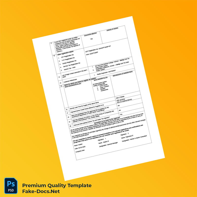 Download the India Kerala State Electronics Development Corporation Ltd Vendor Registration Form Template (Word & PDF) for easy, professional vendor registration documentation.