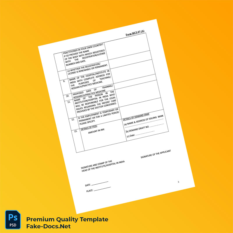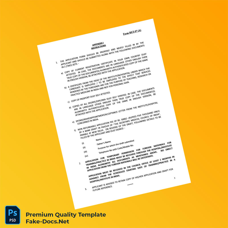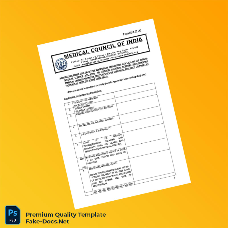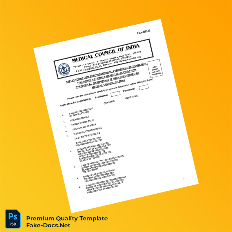 India Medical Council Provisional Permanent Registration Certificate Template (Word & PDF) 8 page