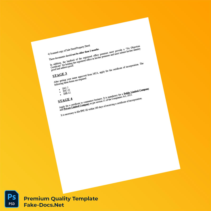 India Ministry of Commerce Editable Business Registration Certificate Template (Word & PDF) 8 page