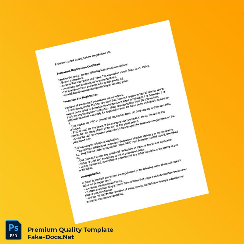 India Ministry of Commerce Provisional Registration Certificate Template (Word & PDF) 3 page