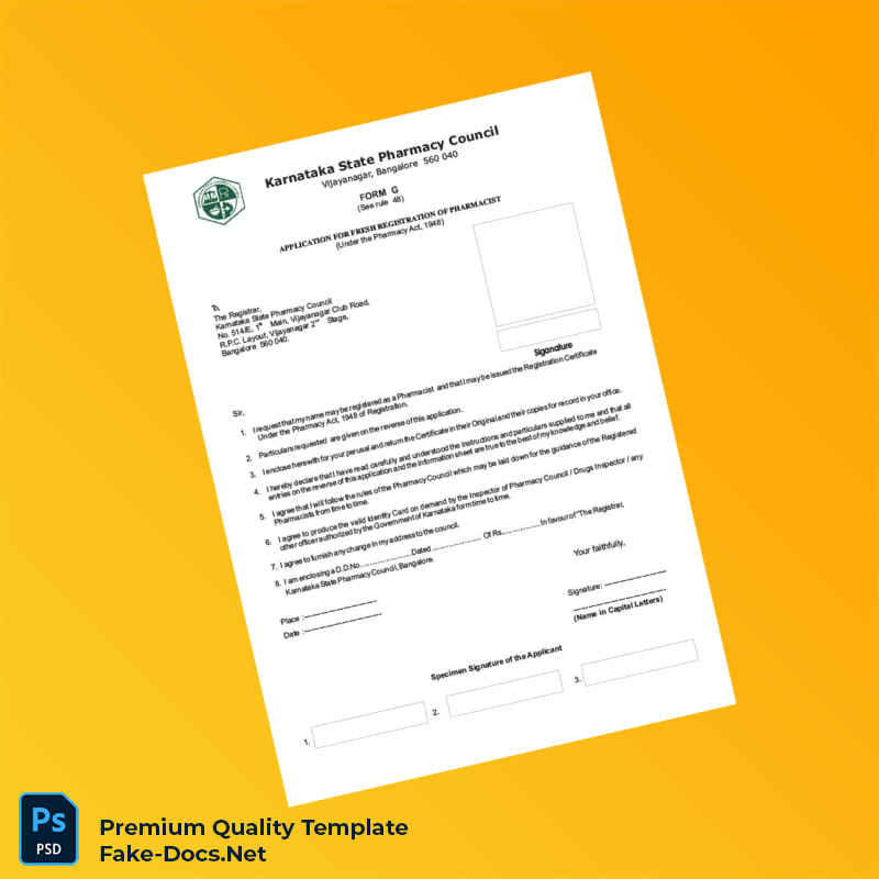 Karnataka State Pharmacy Council Registration Certificate Template (Word & PDF) 8 page