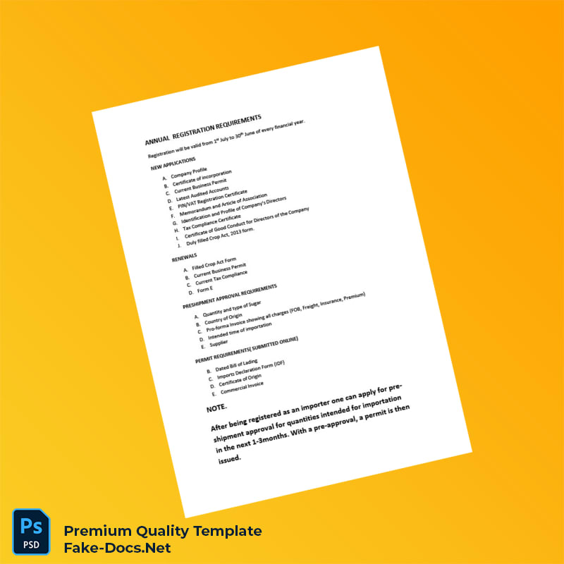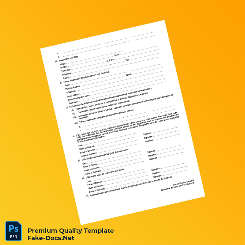 Kenya Agriculture and Food Authority Business Registration Certificate Template (Word & PDF) 3 page