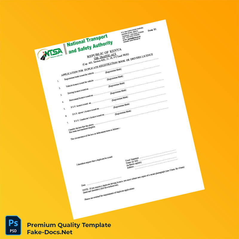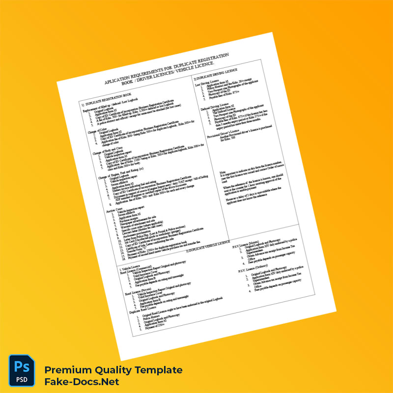 Get the Kenya Traffic Authority Duplicate Registration Book or Drivers Licence Application Template (Word & PDF) for fast, editable document replacement.