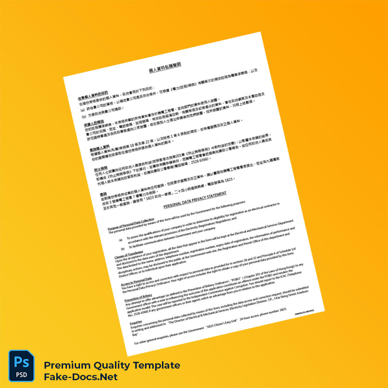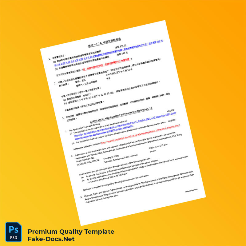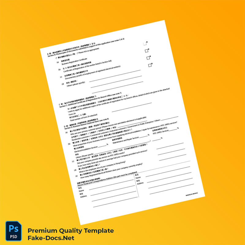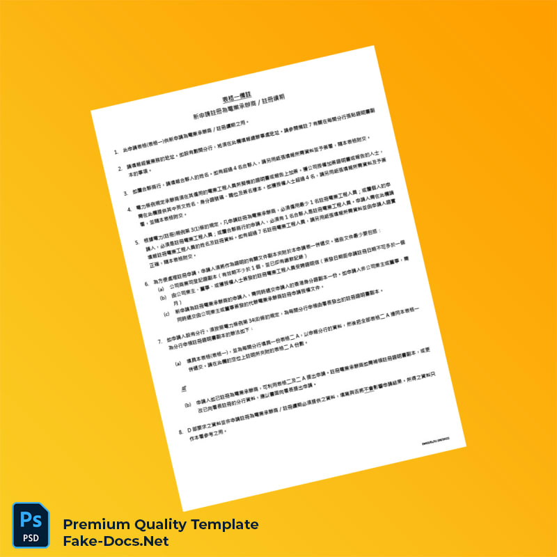 Don’t let incomplete or improperly formatted documents stall your business progress. Harness the power of this comprehensive certificate template to secure your Hong Kong EMSD registration application swiftly and professionally. Purchase now to experience a seamless registration workflow and gain peace of mind for your electrical contracting operations.