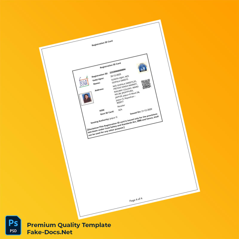 India Food Safety and Standards Authority of India Business Registration Certificate Template (Word & PDF) 4 page