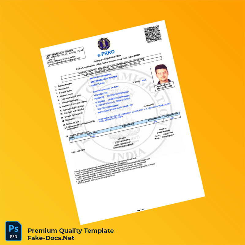 Streamline Your Registration Process with the India Foreigners Registration Office Registration Certificate Template
