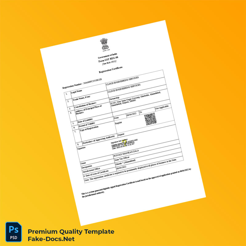 Streamline Your Business Compliance with the India Gujarat GST Registration Certificate Template