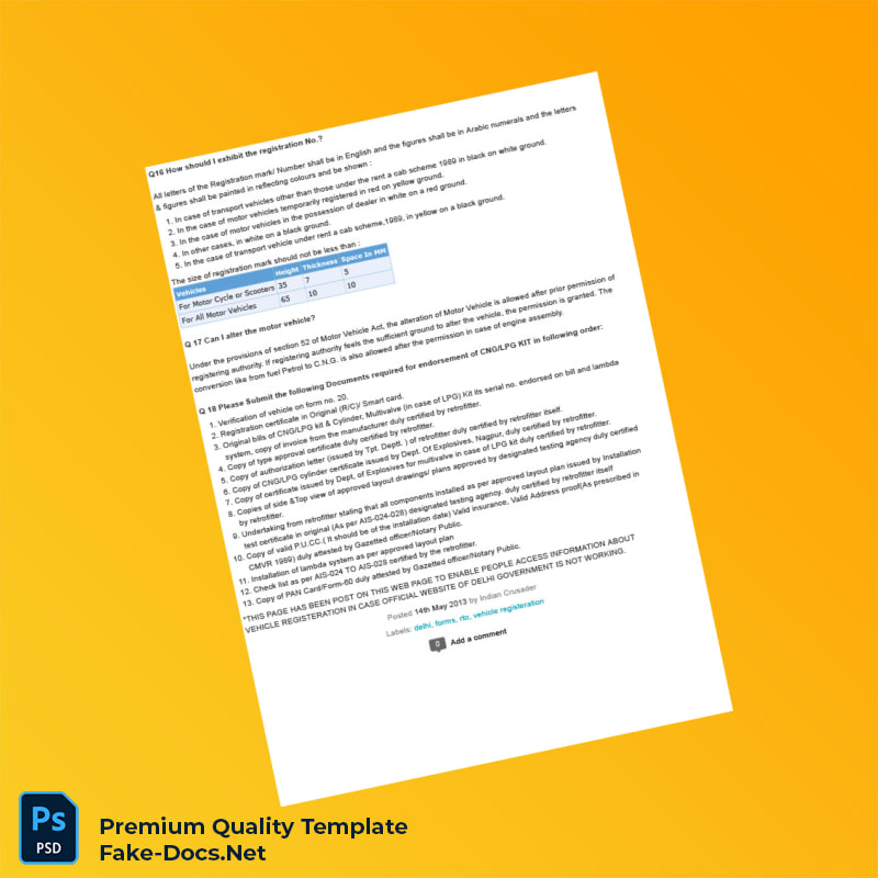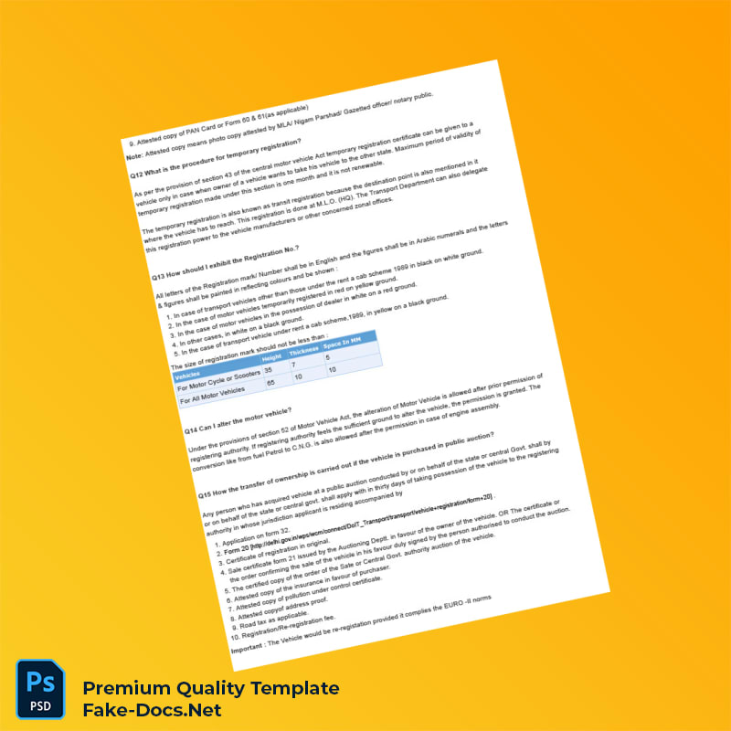 Don’t let missing or outdated registration certificates slow down your operations. Invest in a reliable, editable registration certificate template that meets all your documentation needs. Get your India RTO Vehicle Registration Information Document Template (Word & PDF) today and experience the convenience of professional-grade, customizable vehicle registration documentation at your fingertips.