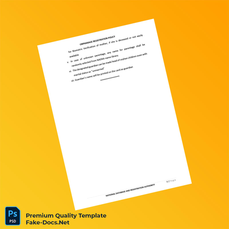 Pakistan NADRA Orphan Registration Policy Template (Word & PDF) 6 page