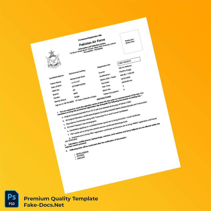 Effortlessly Prepare Your Pakistan Provisional Registration Slip for Air Force Entrance Exam
