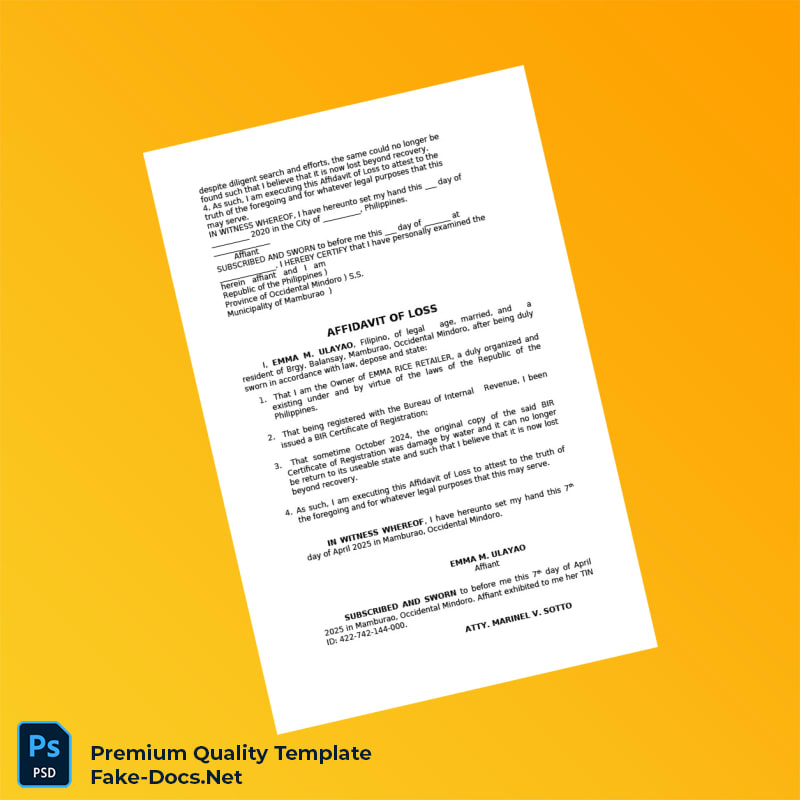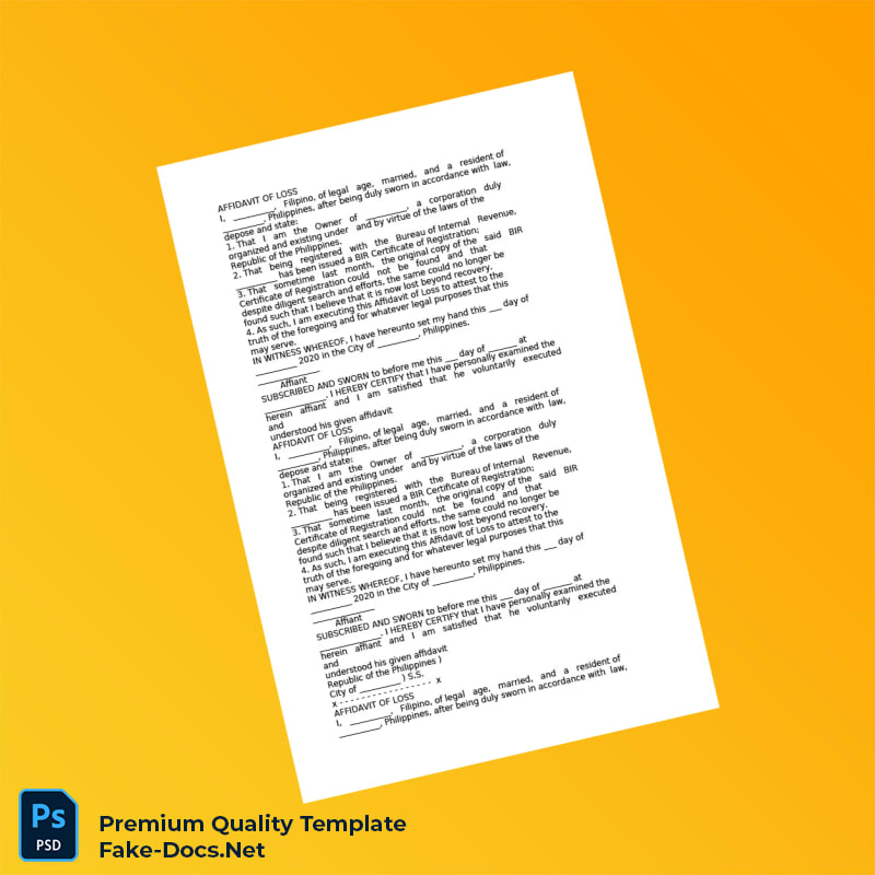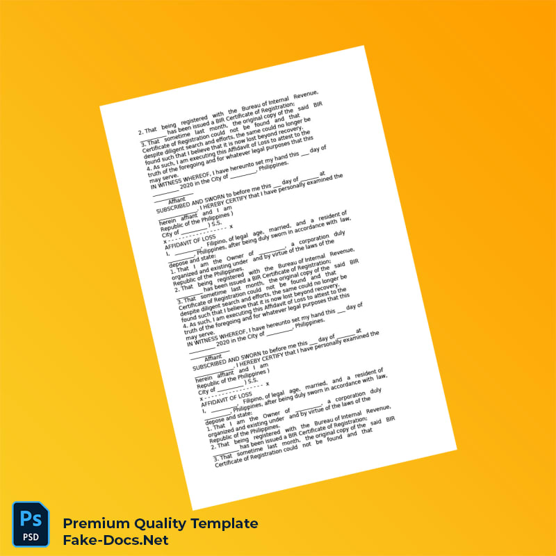 This product is ideal for business owners, legal professionals, and individuals in the Philippines who have lost critical registration certificates and need a quick, legitimate way to document the affidavit of loss to meet government or organizational requirements. It alleviates common frustrations such as lengthy form creation, formatting errors, and delays caused by incomplete filings.