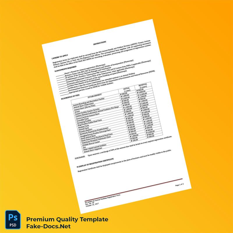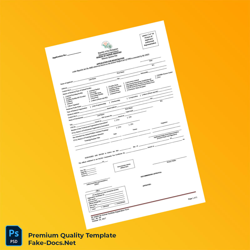 Philippines Bureau of Animal Industry Animal Facilities Registration Form Template (Word & PDF) for fast, professional, and editable registration certificates.