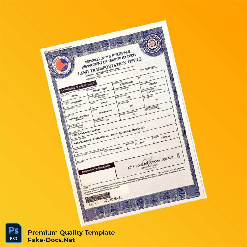 Managing official documents can be time-consuming, especially when you need an immediate replacement or update. The Philippines Department of Transportation Certificate of Registration Template (Word & PDF) is expertly designed to help business professionals and entrepreneurs quickly generate a fully editable and authentic-looking registration certificate, saving valuable time and effort.
