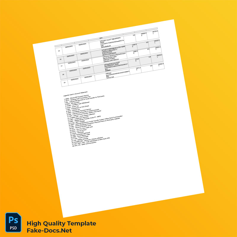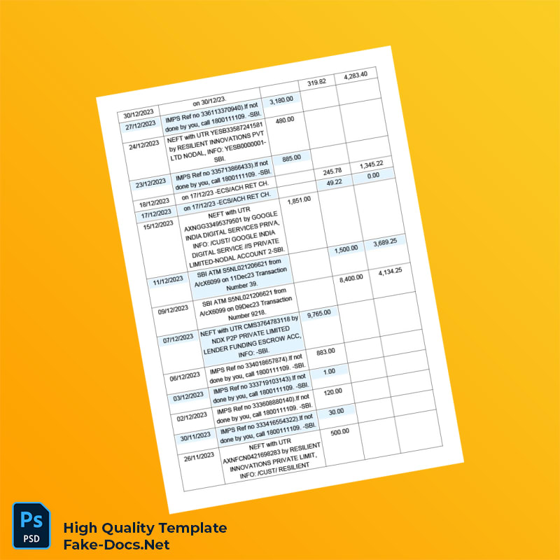India State Bank of India Bank Statement Template in Word and PDF formats 4 page