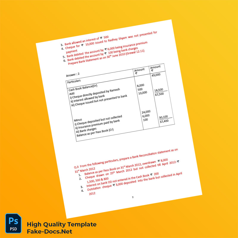 India Simran Bank Statement Template in Word and PDF formats 4 page