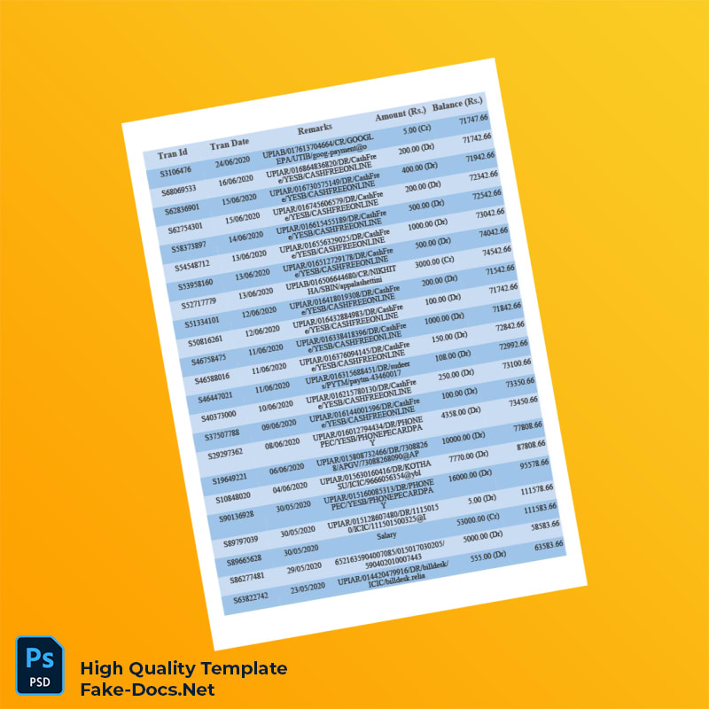 Bank Statement psd template