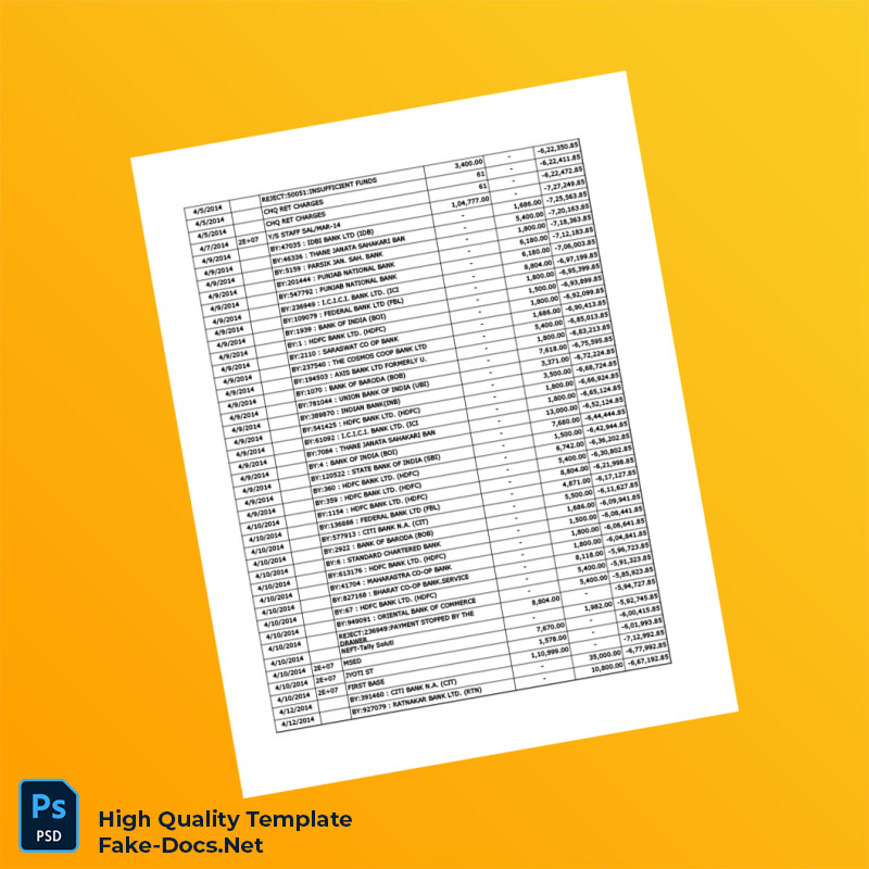 Easily create accurate records with our India Viond Bank Statement Template in Word and PDF formats—essential for professional financial management!