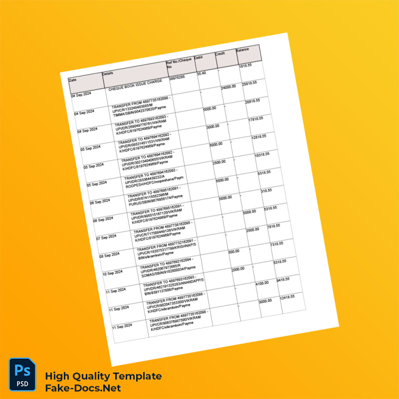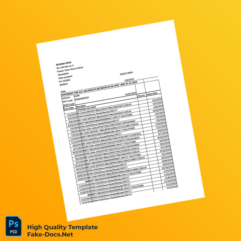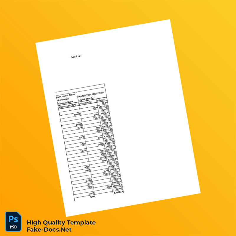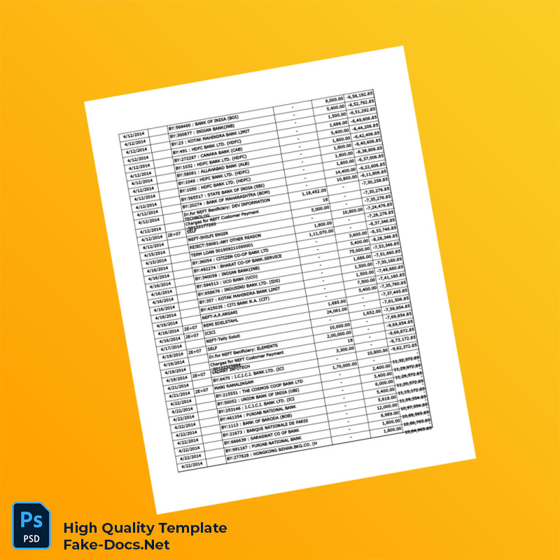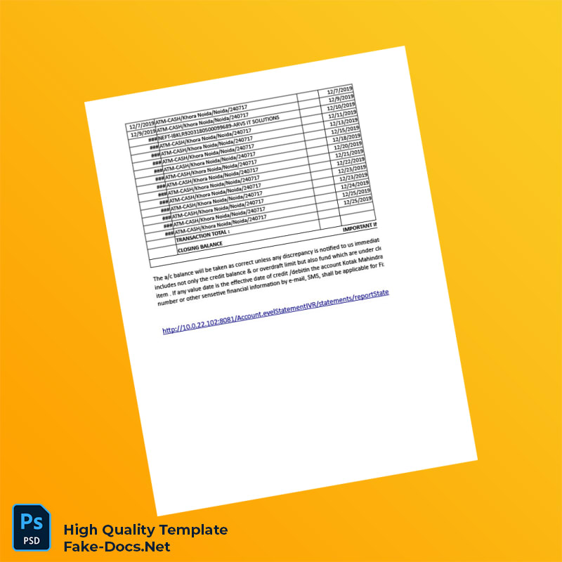 India Viond Bank Statement Template in Word and PDF formats 3 page