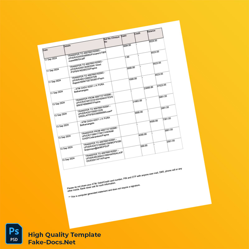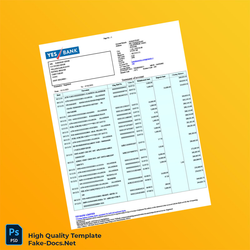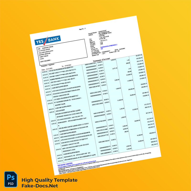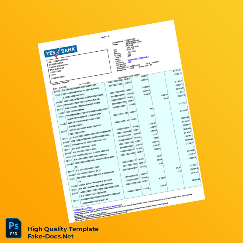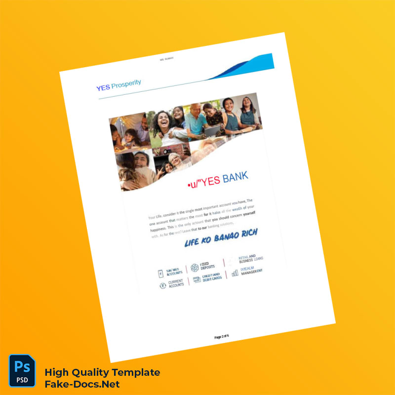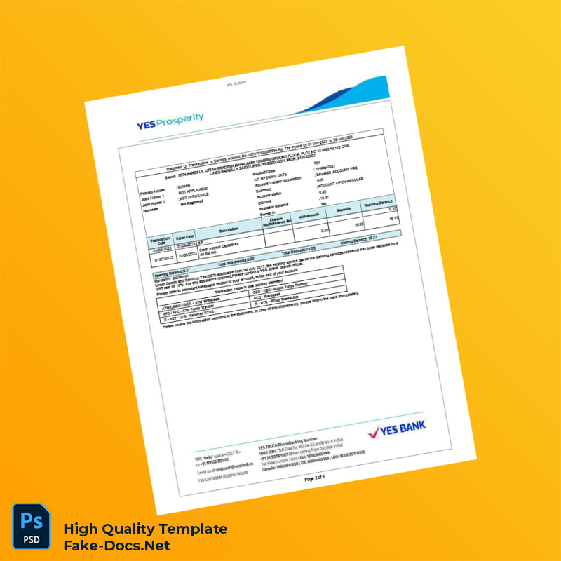 India Yes Bank Statement Template in Word and PDF formats 6 page