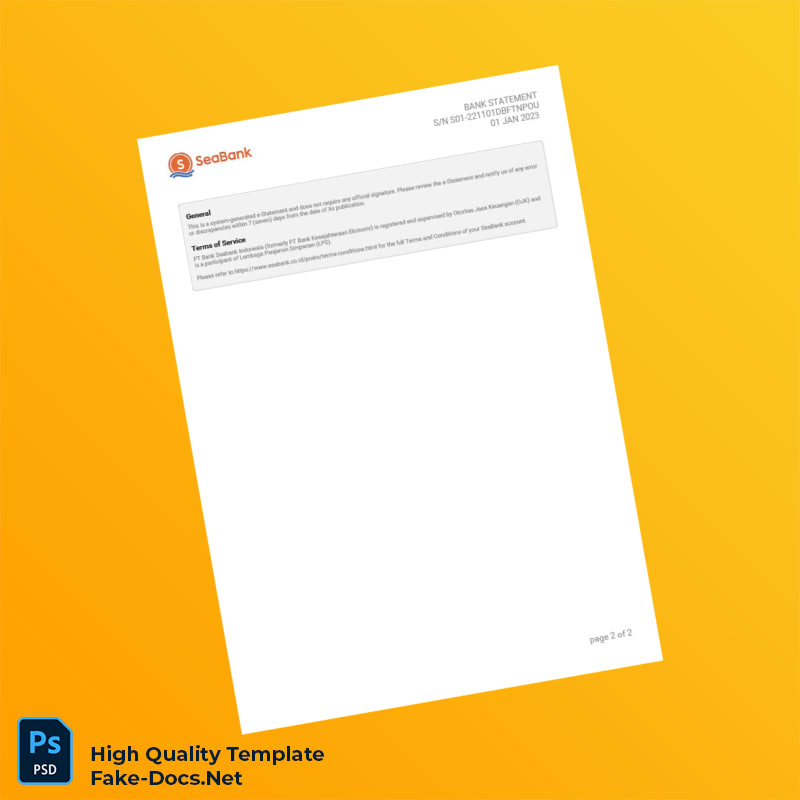 Indonesia Seabank Bank Statement Template in Word and PDF formats 2 page