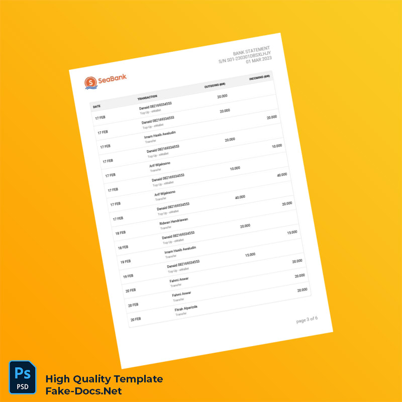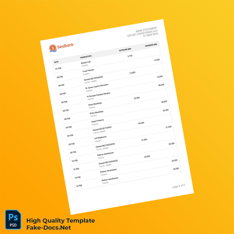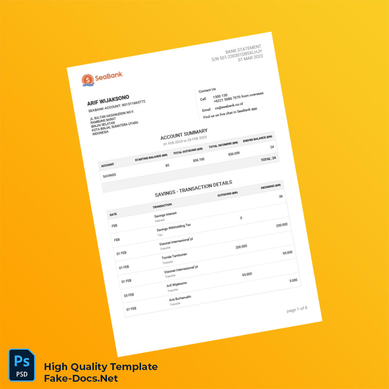 Indonesia Seabank Statement Template in Word and PDF formats 6 page