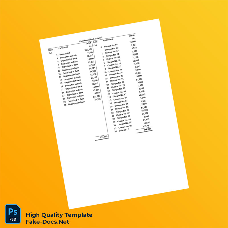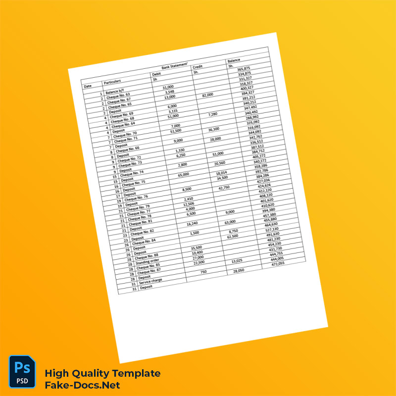 Bank Statement psd template