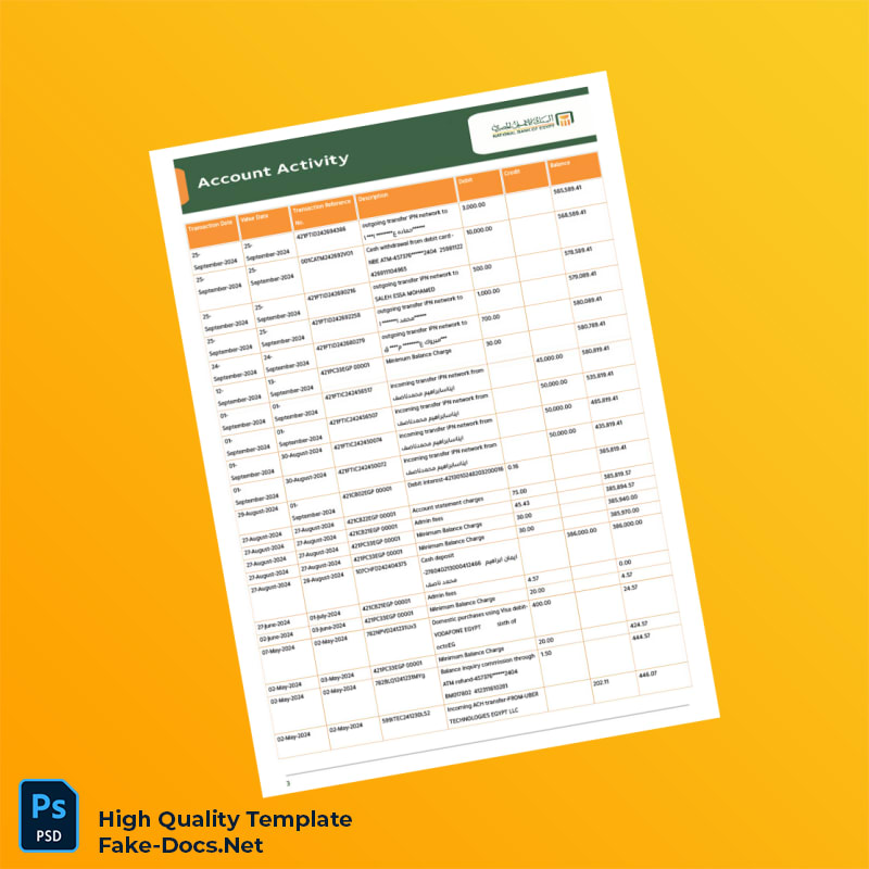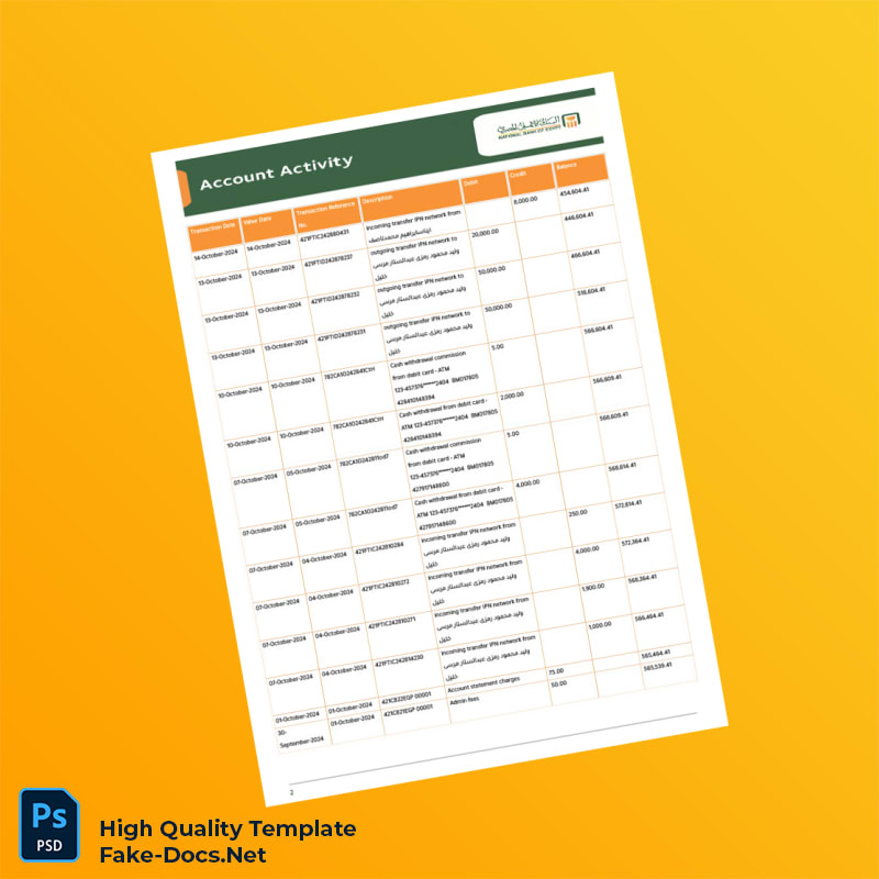 Kuwait National Bank Bank Statement Template in Word and PDF formats 3 page
