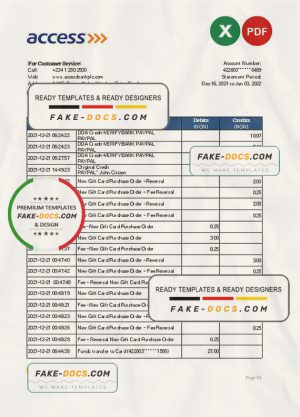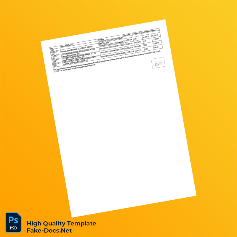 Nigeria Access bank statement template, Word and PDF format (.doc and .pdf)