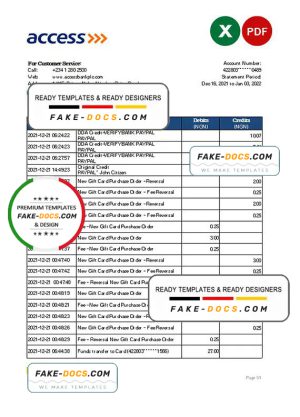 Nigeria Access Bank Statement Template in Word and PDF formats 2 page