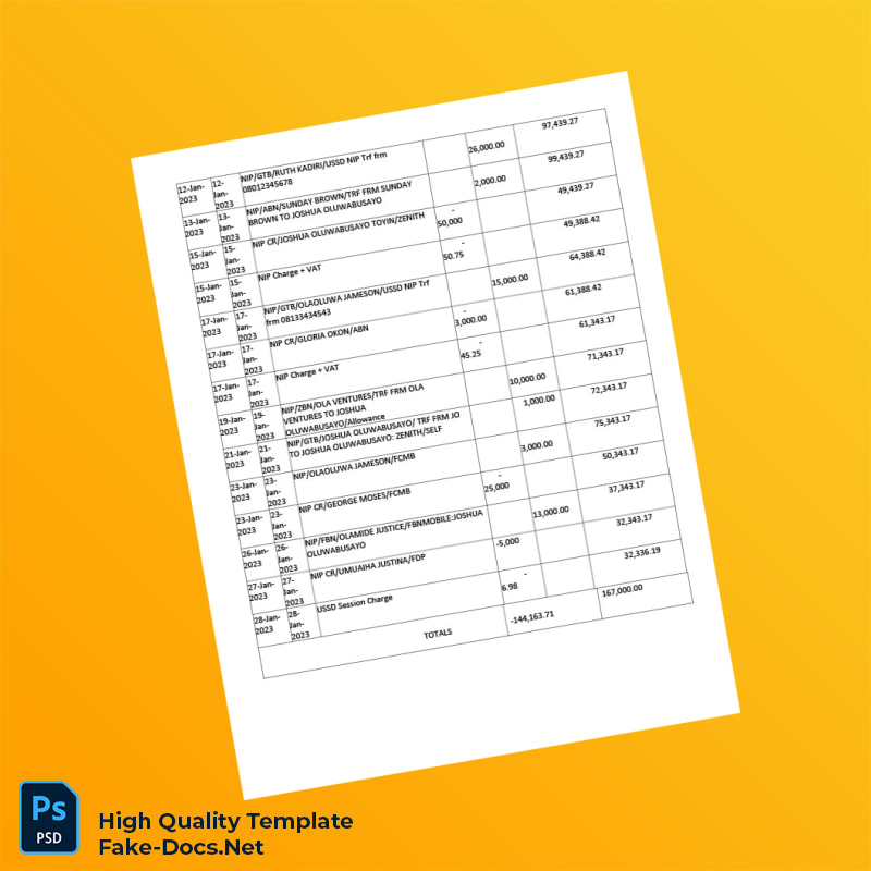 Nigeria GTBank proof of address bank statement template in Word and PDF format