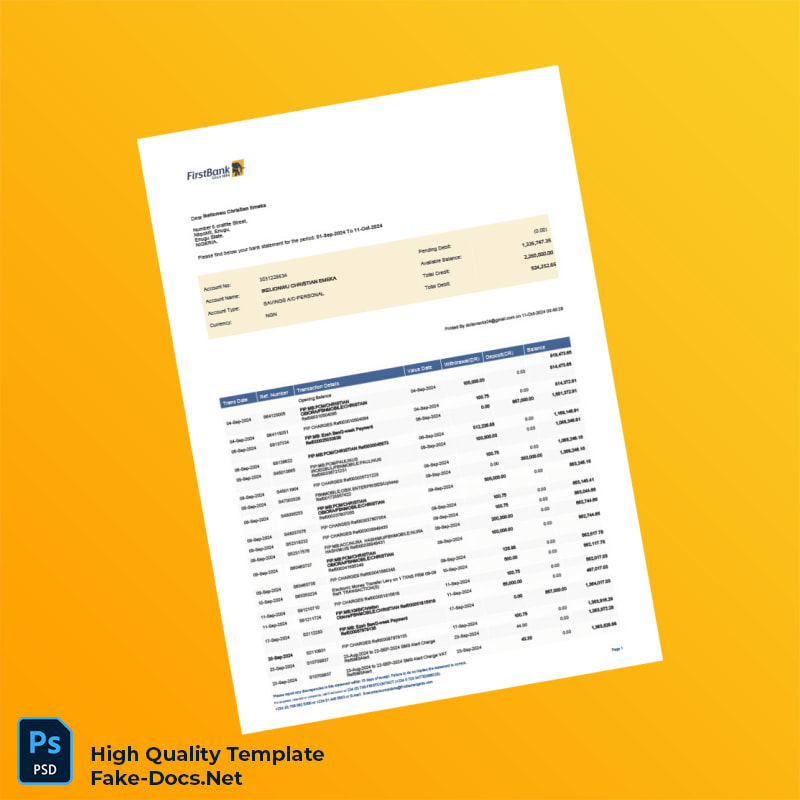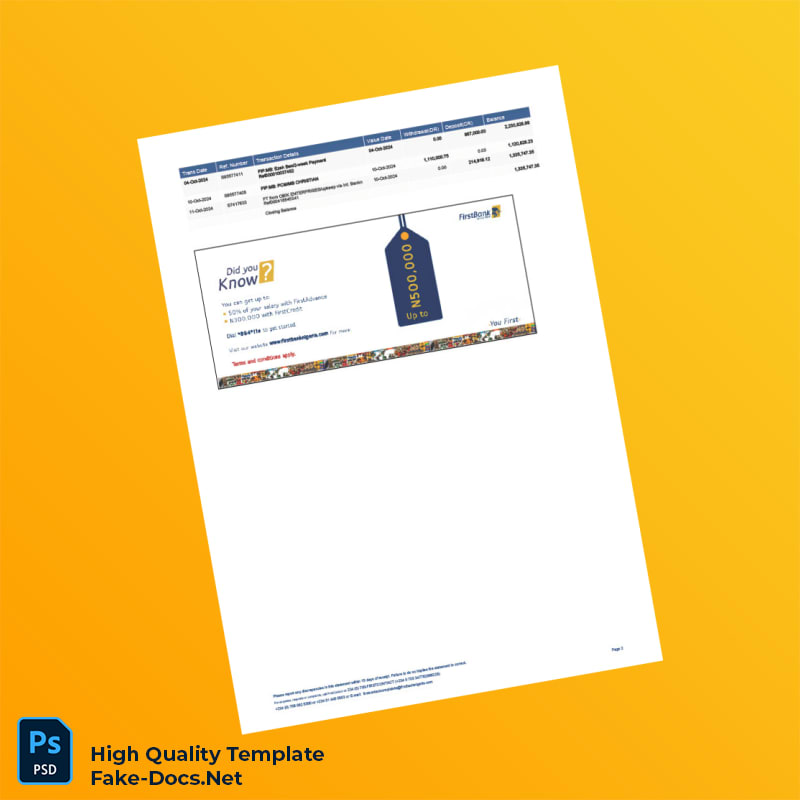 Nigeria FirstBank Statement Template in Word and PDF formats 2 page