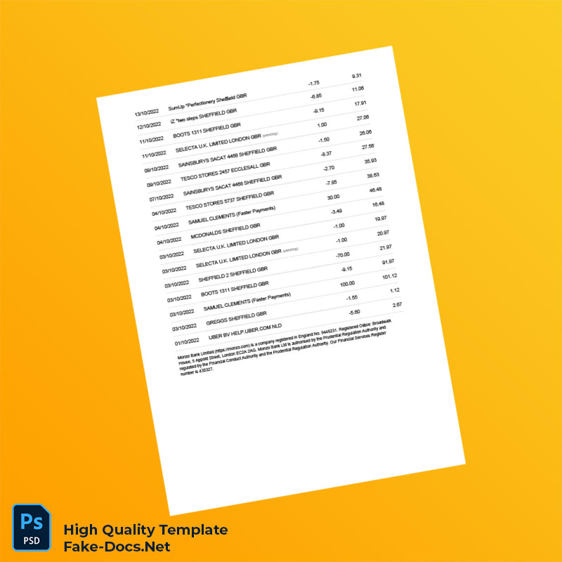 Poland Monzo Bank Statement Template in Word and PDF formats 2 page