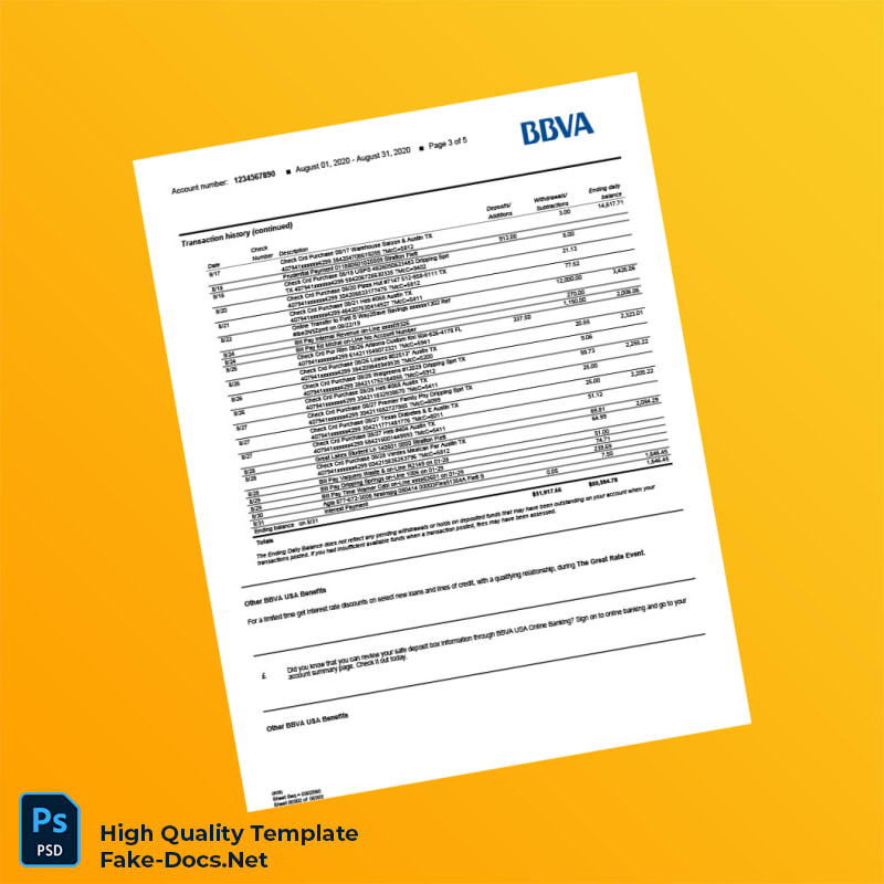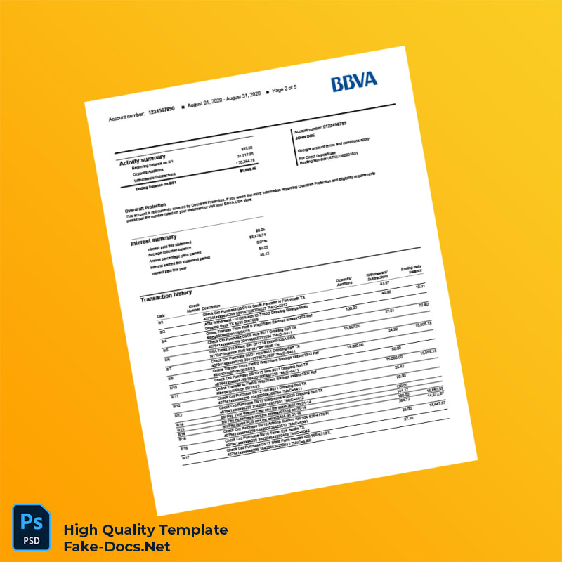 Spain BBVA Bank Statement Template in Word and PDF formats 5 page