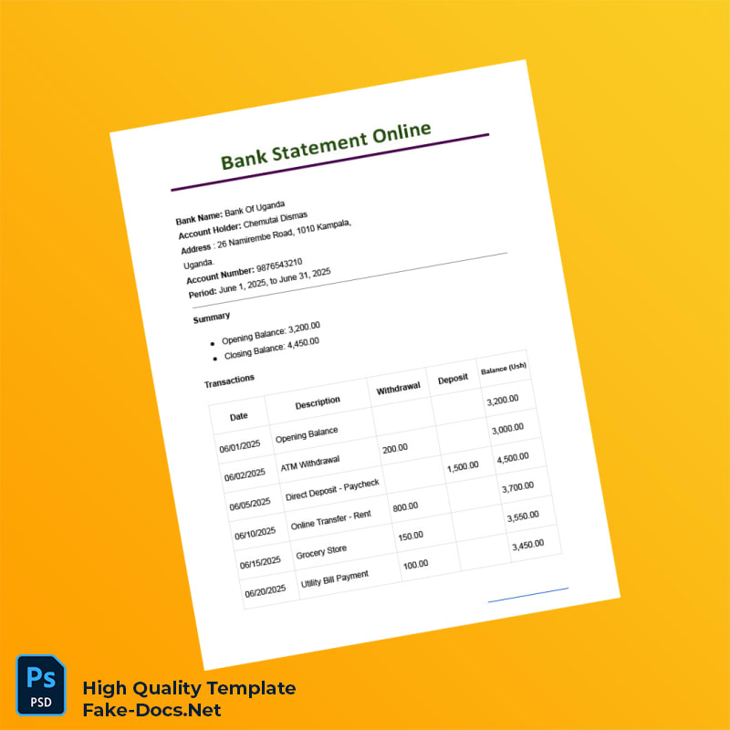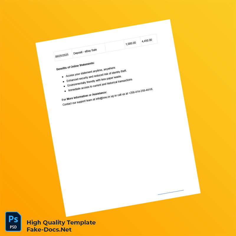 Uganda Bank of Africa proof of address bank statement template in Word and PDF format