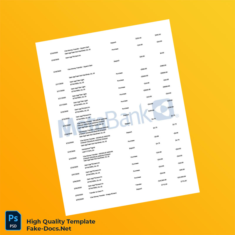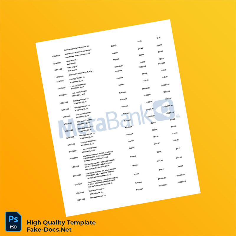 USA Metabank Checking Account Statement Template in Word and PDF formats 4 page