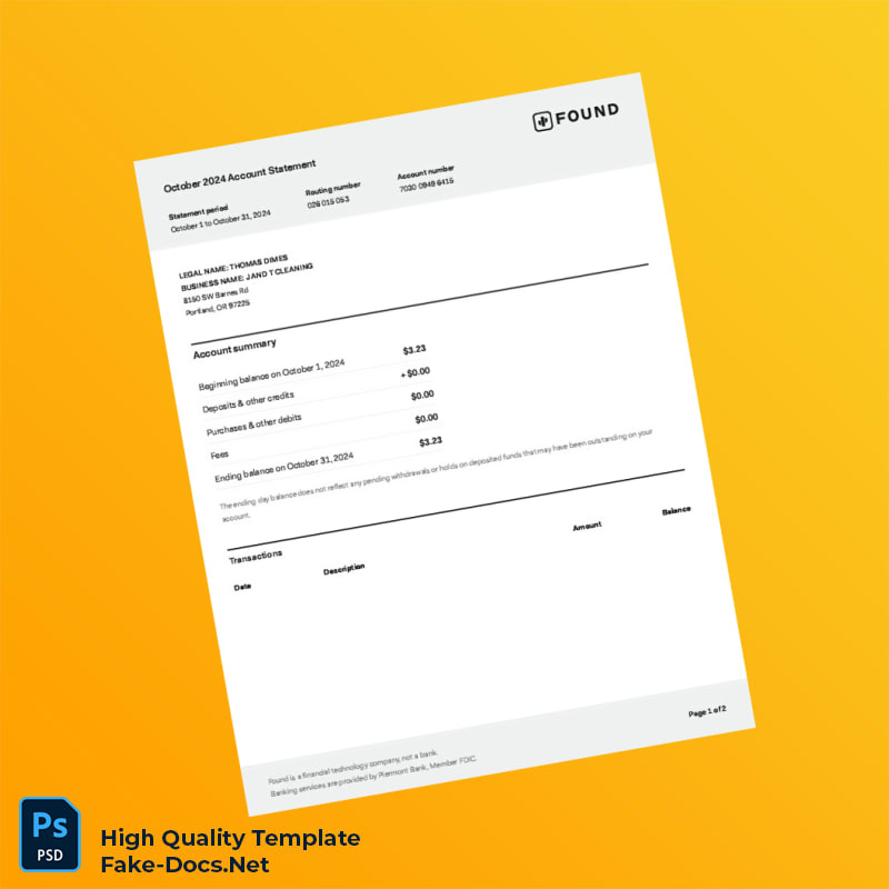 USA PNC bank statement template in Excel and PDF format, 2 pages