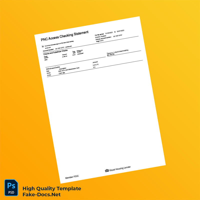 USA PNC bank statement template in Word and PDF format, 2 pages