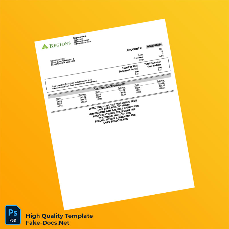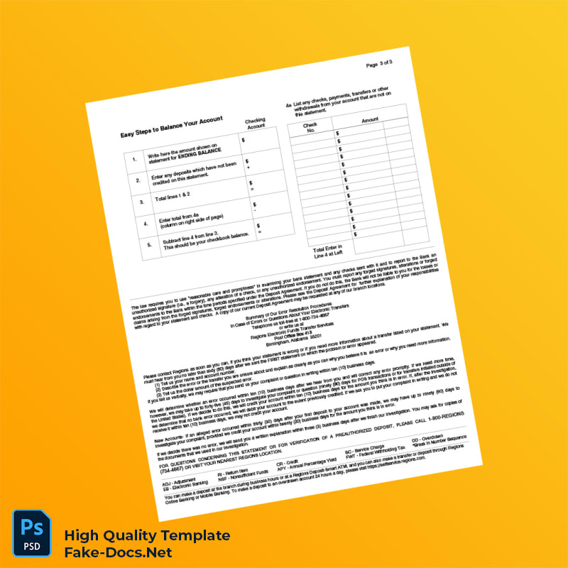 USA Regions Bank Statement Template in Word and PDF formats 6 page