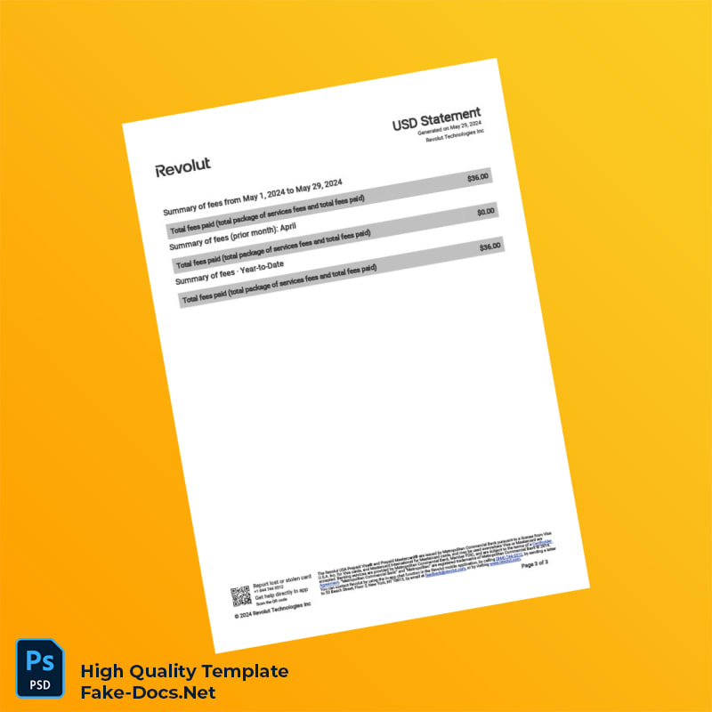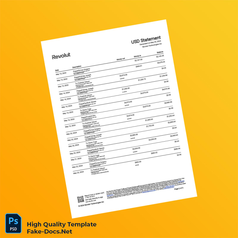USA Revolut Account Statement Template in Word and PDF formats 3 page