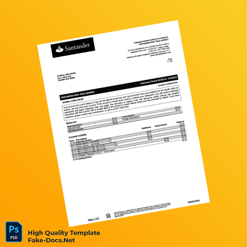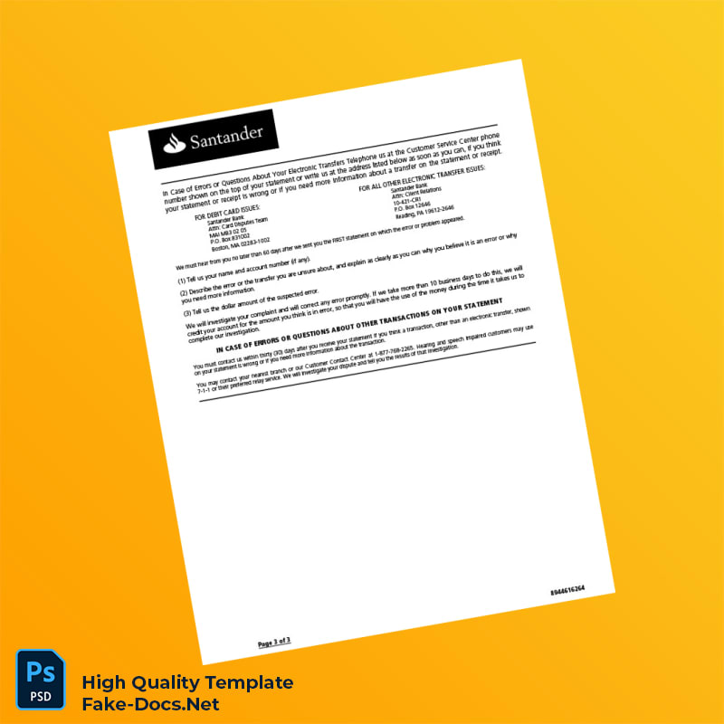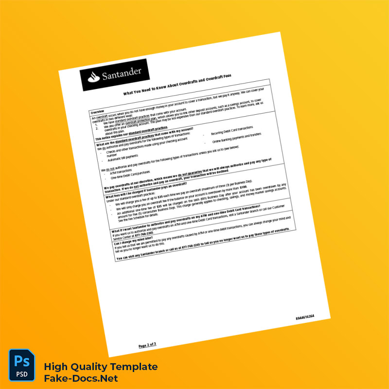 USA Santander Bank Statement Template in Word and PDF formats 3 page