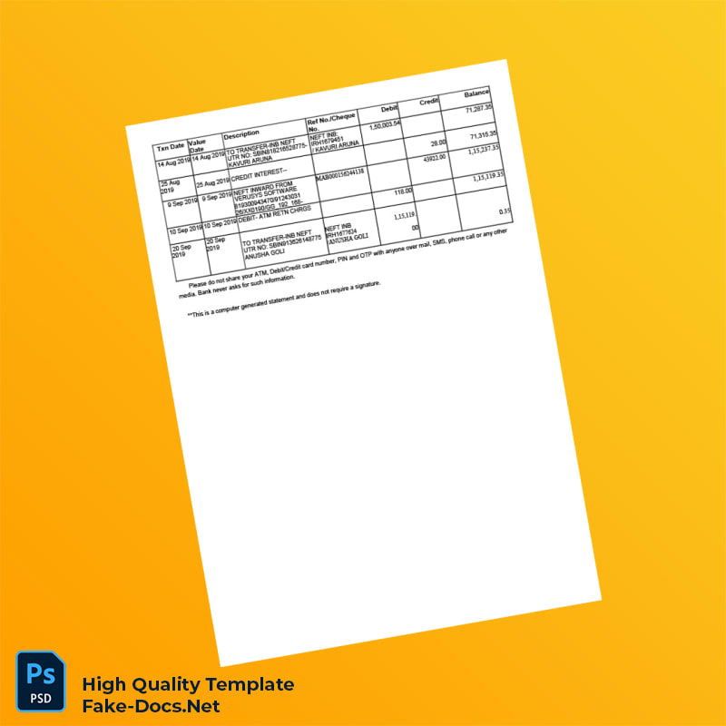 Bank Statement psd template