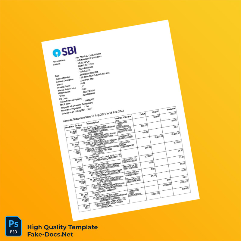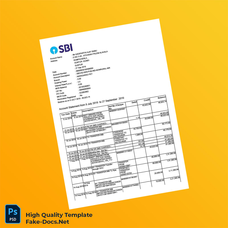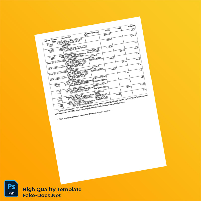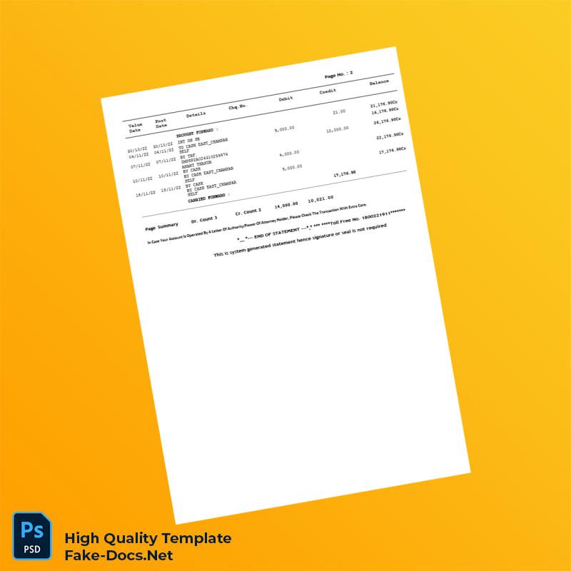 India Bank Statement Template in Word and PDF formats 2 page