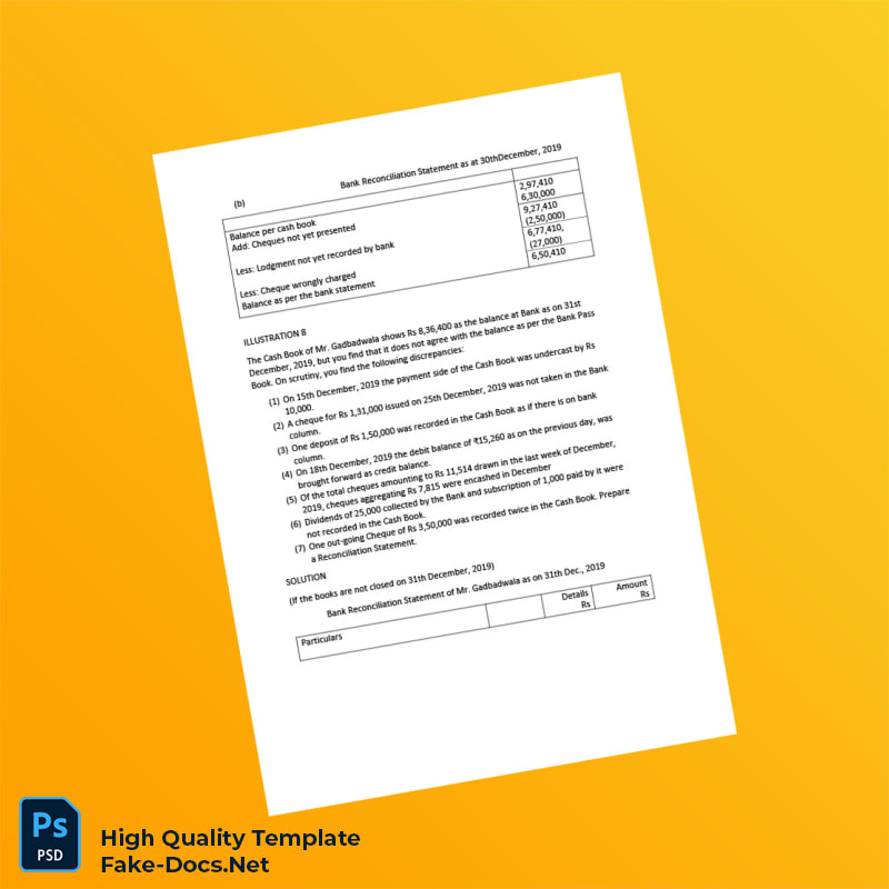 India Bank Reconciliation Statement Template in Word and PDF formats 6 page