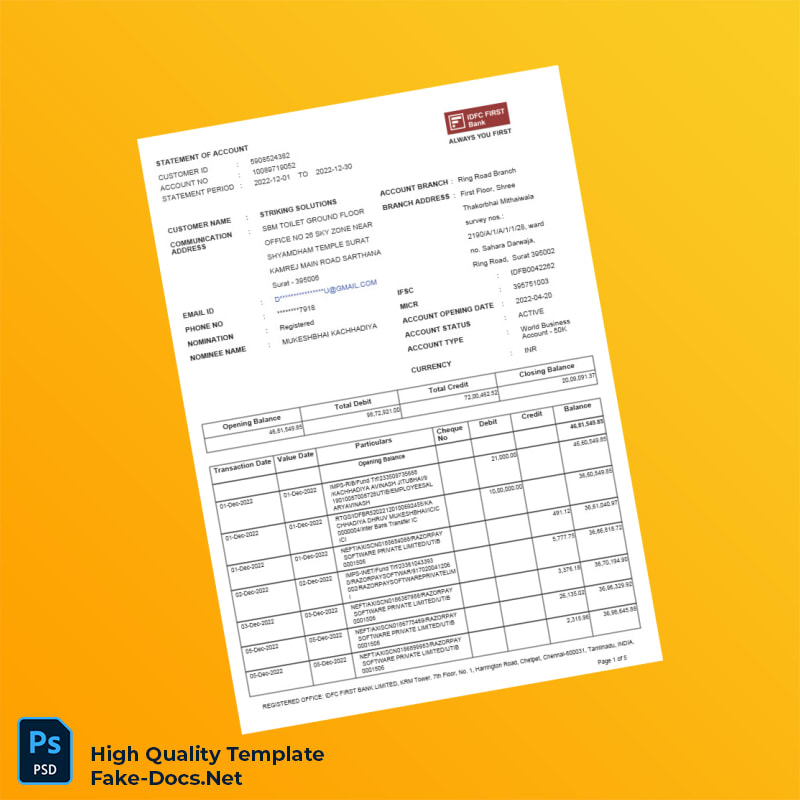 India Bank Statement of Payout Account Template in Word and PDF formats 5 page
