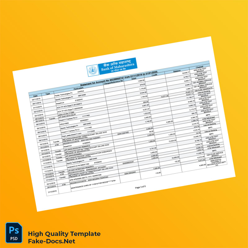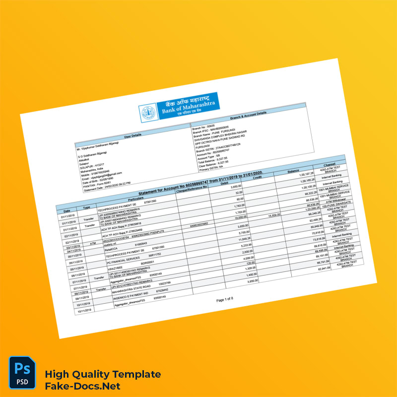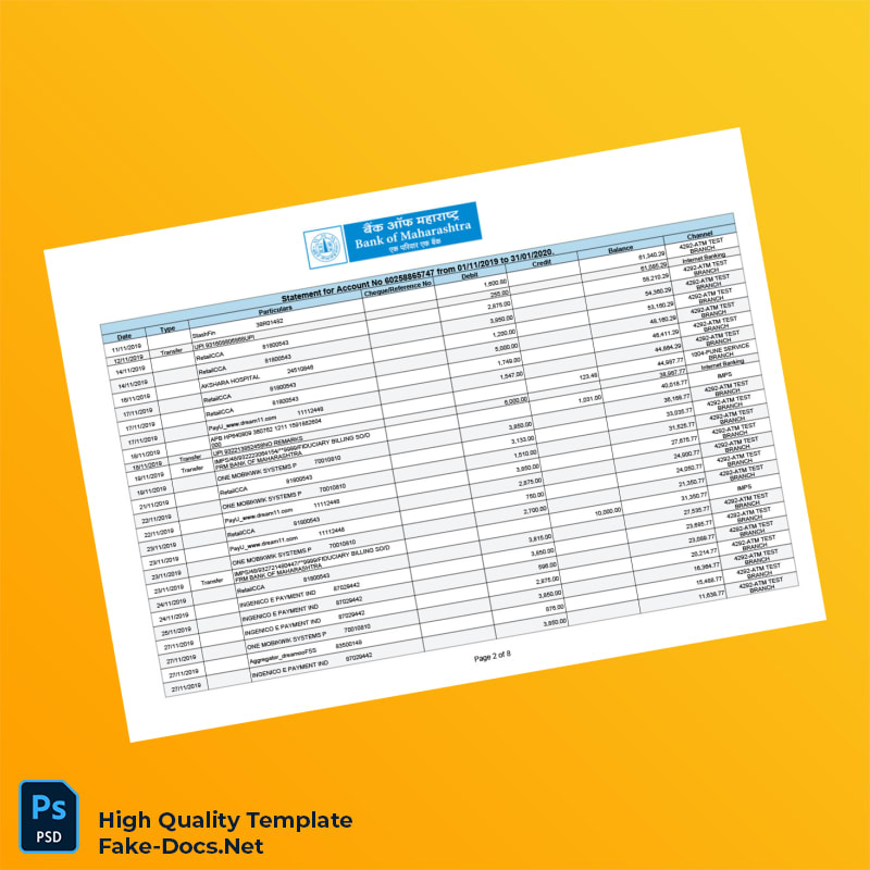 India Bank of Maharashtra Bank Statement Template in Word and PDF formats 8 page