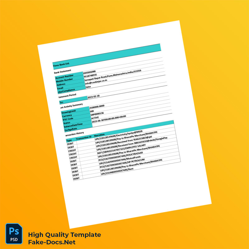 Streamline your finances with our India Finvu Bank Statement Template in Word and PDF formats. Perfect for professional use and easy to customize!