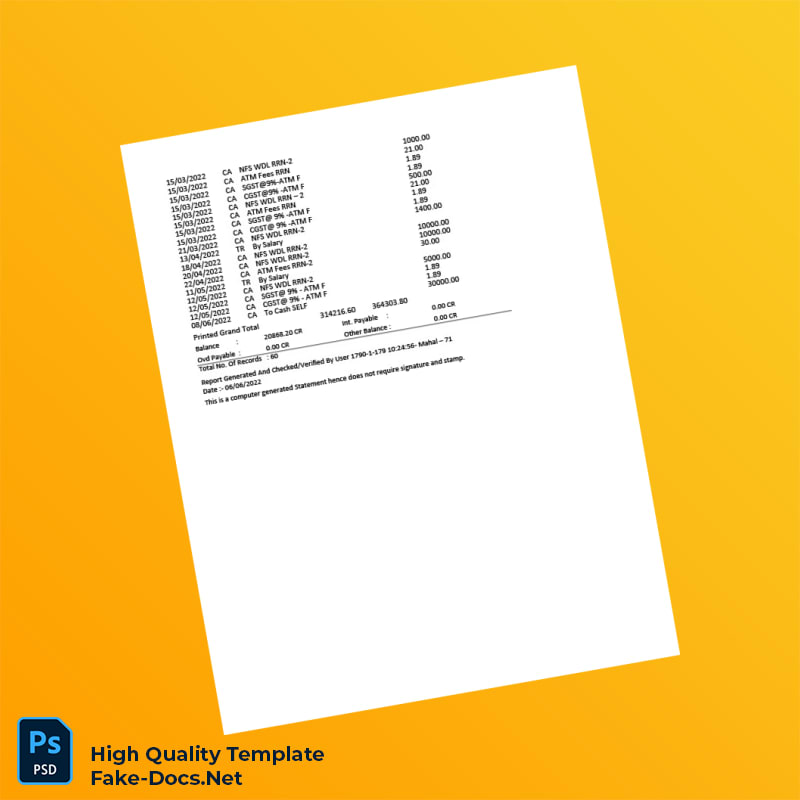India Home Bank Bank Account Statement Template in Word and PDF formats 2 page