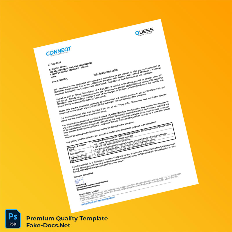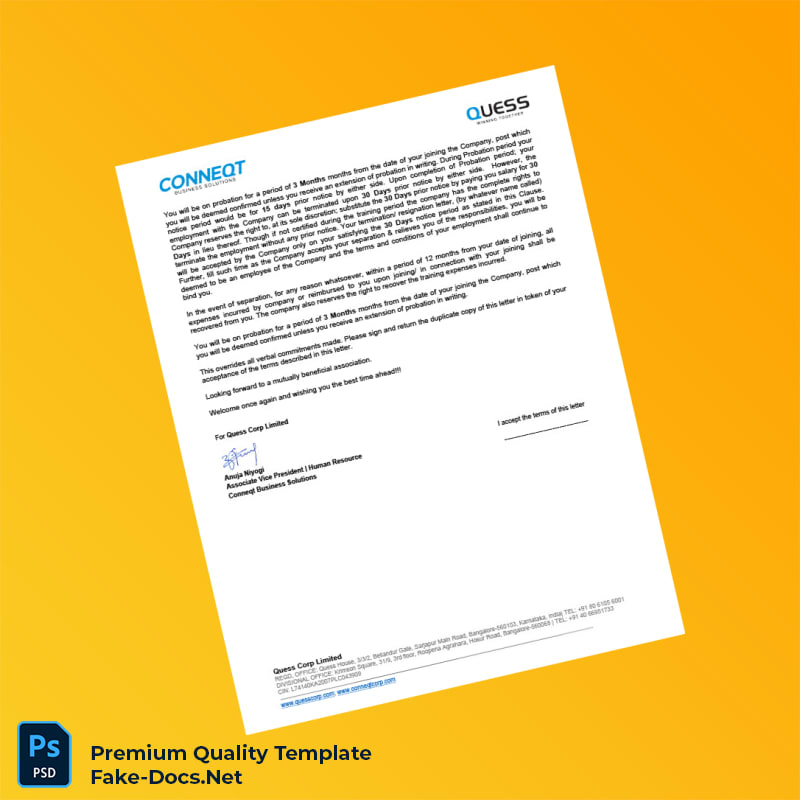 India Guess Corp Limited Employment Verification Letter Template (Word & PDF) 4 page